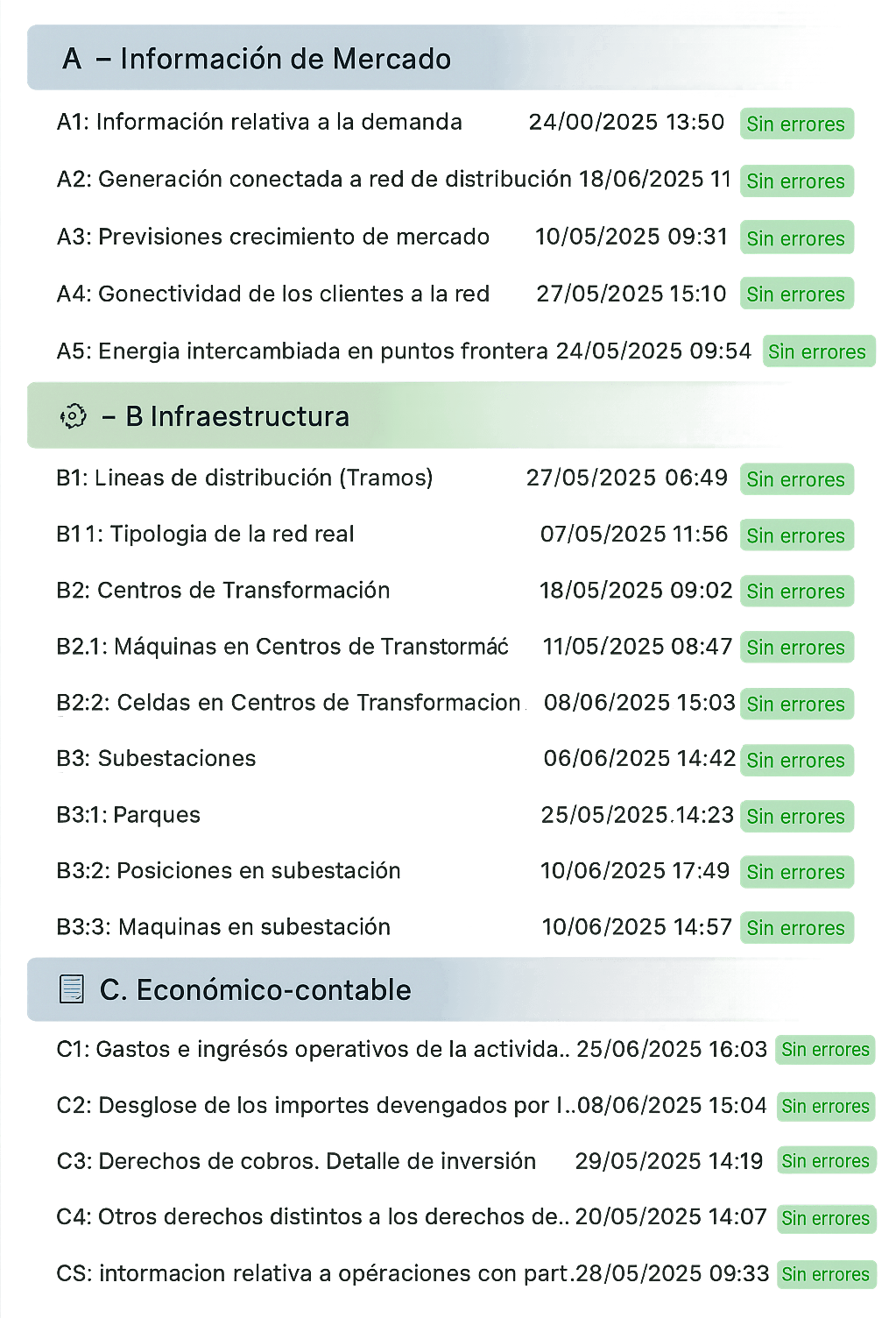 Nuestra solución asegura una consistencia robusta y automatizada entre las bases de datos GIS y Retribución, pilares esenciales en la gestión de la infraestructura eléctrica del distribuidor