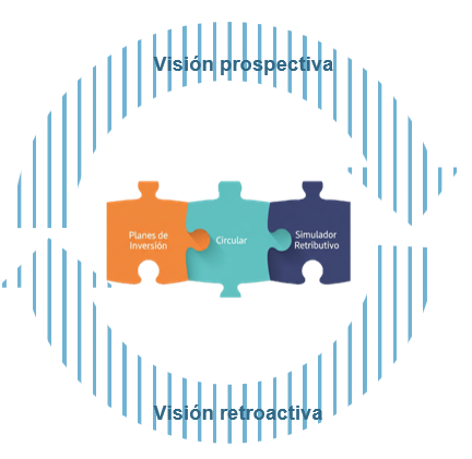 Combina el enfoque prospectivo presente en la planificación de las actuaciones futuras y en la proyección del retorno asociado a inversiones ejecutados, con el enfoque retroactivo inherente al reporte anual al Organismo Regulador de las inversiones en activos puestos en servicio durante el ejercicio anterior